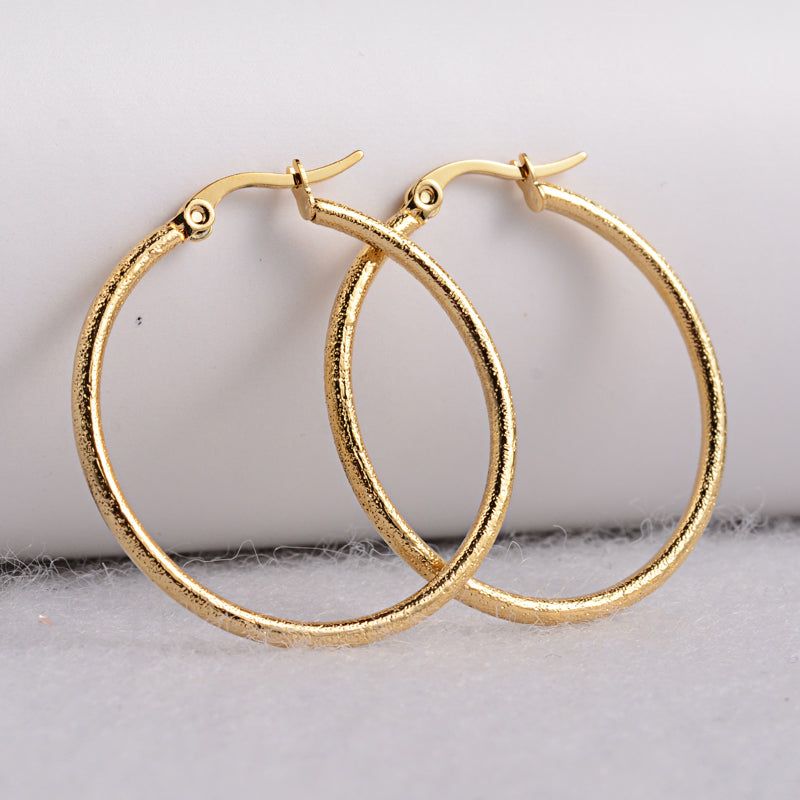 Arracada mediana con acabado texturizado, acero inoxidable dorado.