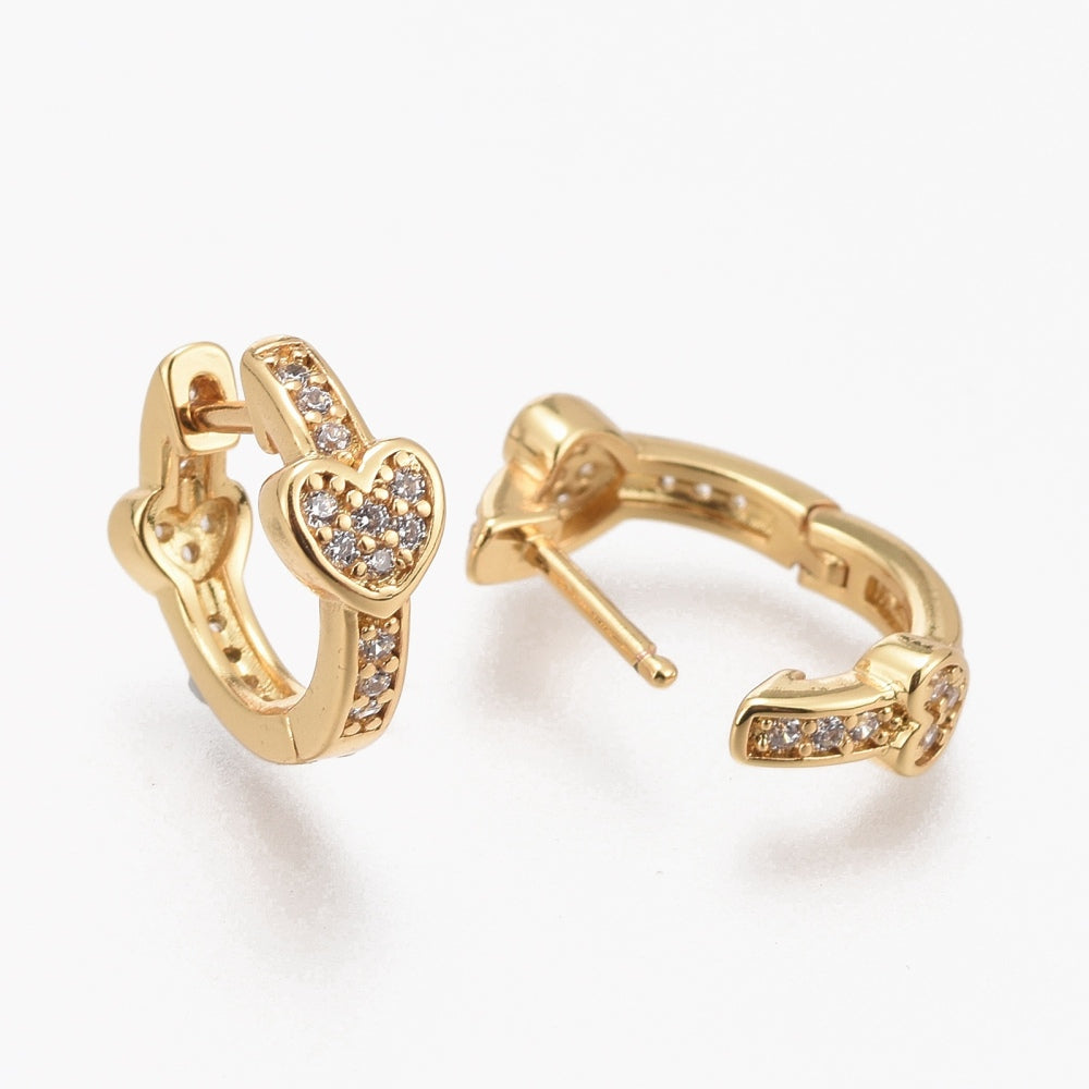 Huggies en latón bañado en oro 18k, con mini corazón en zirconias.